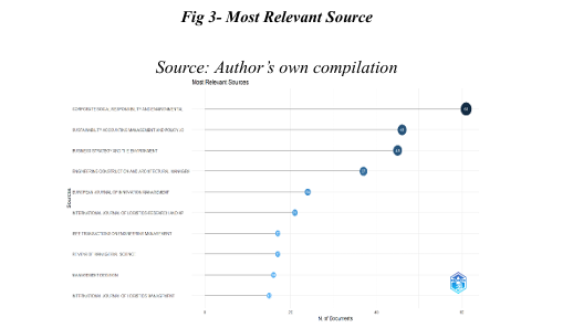 Other journals like Engineering, Construction, and Architectural Management (37 articles) and the European Journal of Innovation Management (24 articles) point to the growing relevance of sustainability in infrastructure development, supply chains, and innovation systems. Additionally, IEEE Transactions on Engineering Management and the Review of Managerial Science (each with 17 articles) draw attention to the role of technology and managerial decision-making in promoting sustainable practices. This wide disciplinary coverage highlights how sustainability research cuts across multiple domains—from corporate governance and finance to engineering and operations— emphasizing the need for more cross-sector collaboration and integration in future