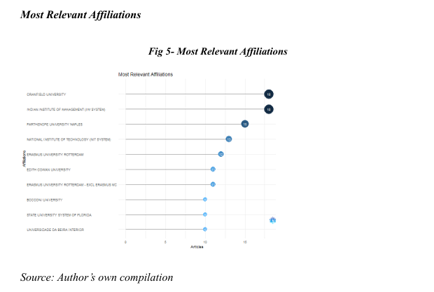 From the figure 5 the analysis of institutional affiliations highlights the leading research