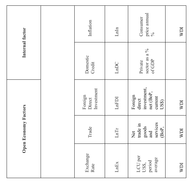 DCit= Domestic credit ‘t’ represents ‘time’, ‘i’ represent ‘observation’ and ‘f’ represent ‘function’. From the equation (1), we derive the equation (2)